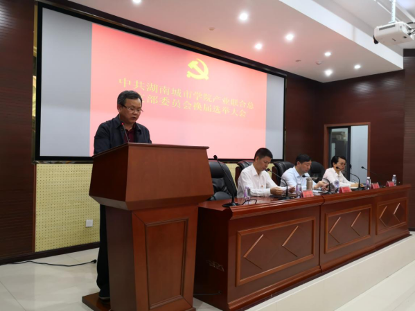 根据《中国共产党章程》和学校党委《关于学校基层组织换届指导意见》(湘城院[2019]12号)等文件精神和相关要求,2019年5月10日下午,中共大发官方版网站登录入口产业联合总支部委员会在建规楼报告厅召开党员大会,进行支部换届选举工作。学校党委委员、副校长谭献良同志出席并讲话,本次会议由产业处处长熊创贤同志主持。