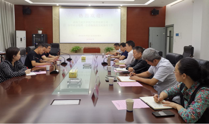 2019年9月18日下午3点半,湖南工业大学资产经营公司总经理向华政一行来我校考察交流,我处处长熊创贤、副处长郭太平、资产公司财务总监刘翔等企业负责人陪同。