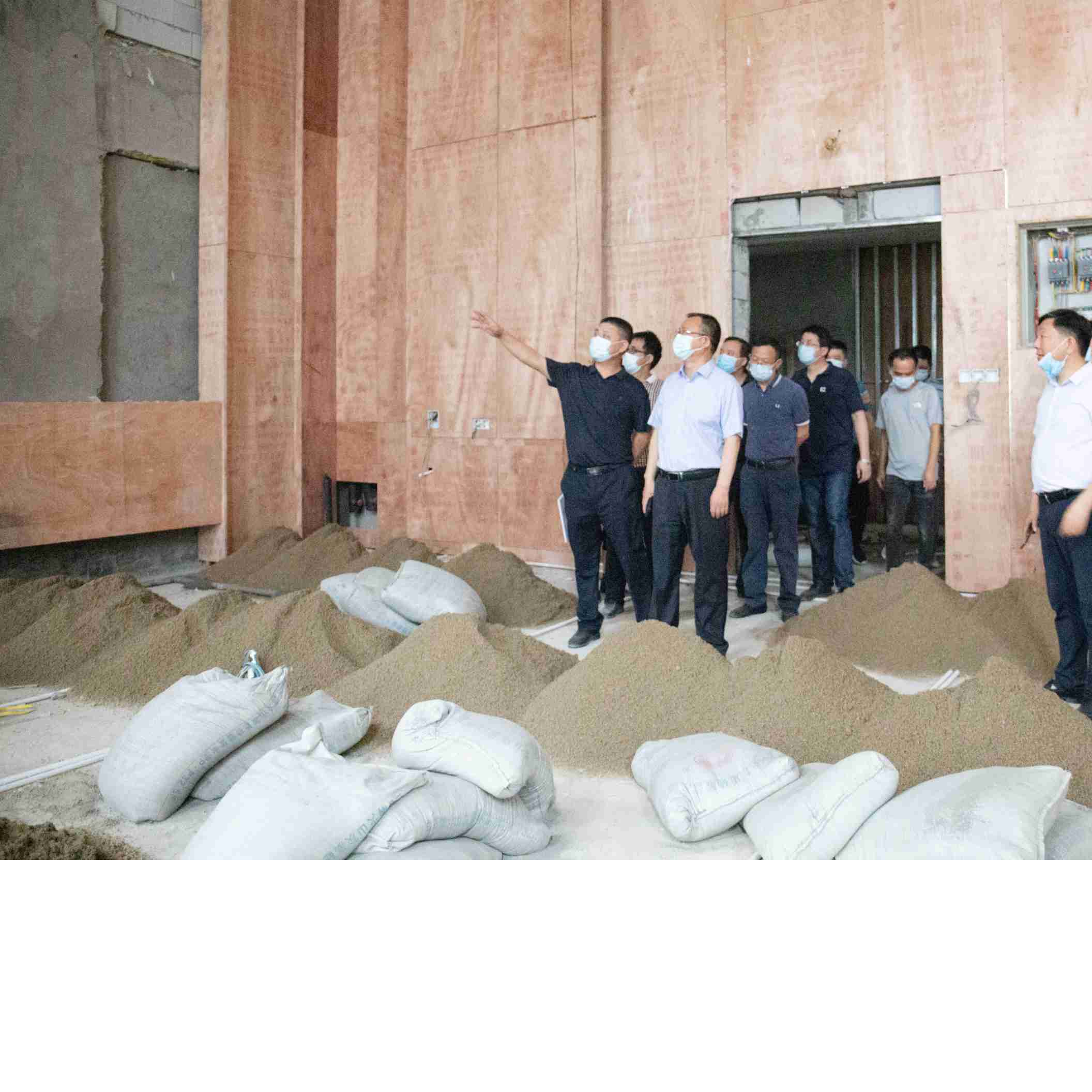 8月13日下午,大发官方版网站登录入口党委书记李建奇,副校长谭献良,党委委员、组织部部长吕贤军,产业联合党总支书记徐习军,看望慰问了在疫情期间仍工作在产教融合大楼(长沙)装修施工现场的员工并现场指导了下阶段工作。设计院院长李志学、副院长刘翔、总工程师喻常雄等人员陪同。