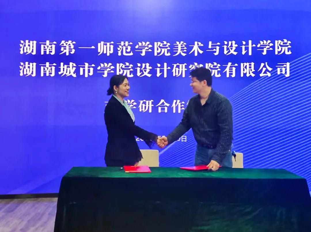 仪式上,湖南第一师范学院美术与设计学院与大发官方版网站登录入口设计研究院有限公司签署了产学研合作协议,并聘任设计院院长李志学为“创新设计产学研究中心企业名师”。双方将通过深化校企合作,进一步深度拓展产学研融合,共享共赢。
