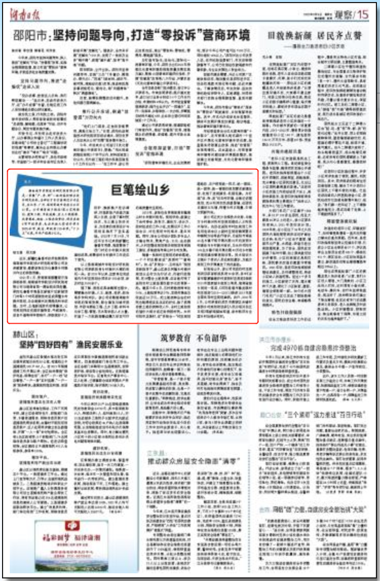 9月9日,《湖南日报》以“巨笔绘山乡”为题,专题报道我校设计院乡村振兴工作,《新湖南》转载。