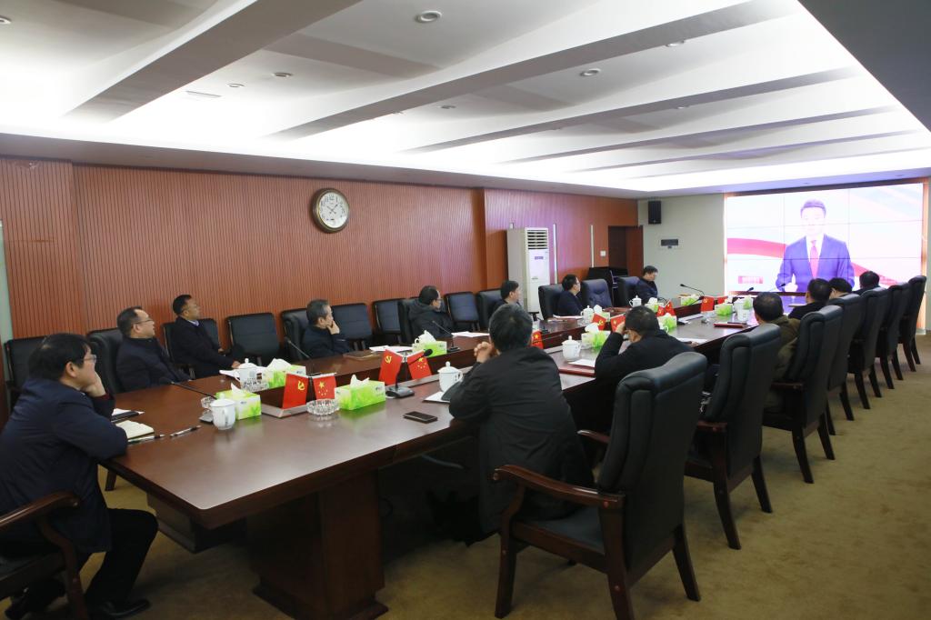党委理论学习中心组成员集中观看全国脱贫攻坚总结表彰大会实况直播。