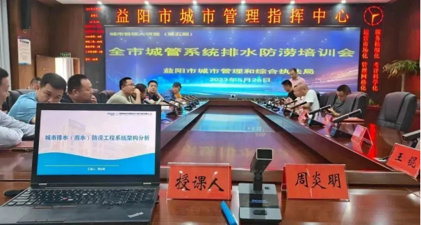 为贯彻落实住房和城乡建设部办公厅、国家发展改革委办公厅《关于做好2023年城市排水防涝工作的通知》精神,5月26日,益阳市城市管理和综合执法局组织召开“益阳市城管系统排水防涝培训会”,参与学习人员包括局属相关单位及各县市区城管局排水防涝分管负责人、排水防涝主管单位负责人、业务科室负责人及专干80余人。我校设计院总支委员周炎明受邀参加并作了“城市排水(雨水)防涝工程系统架构分析”主题讲座。