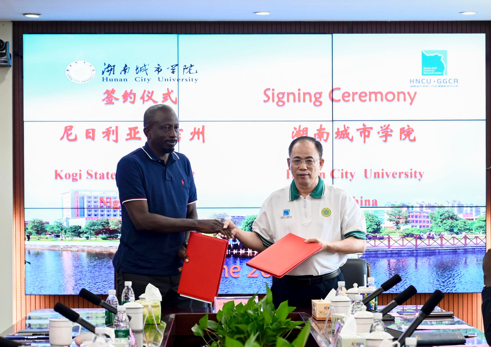 在前期充分酝酿、现场充分交流与讨论的基础上,学校分别与塞拉利昂共和国驻华大使馆、尼日利亚科吉州教育科技厅、全球合作促进研究院达成合作意向,并签订2份合作意向书。学校聘任全球合作促进研究院院长李振生、湖南省中非经贸合作促进研究会财税评议中心主任曾爱武为几内亚湾国家研究中心特聘专家。