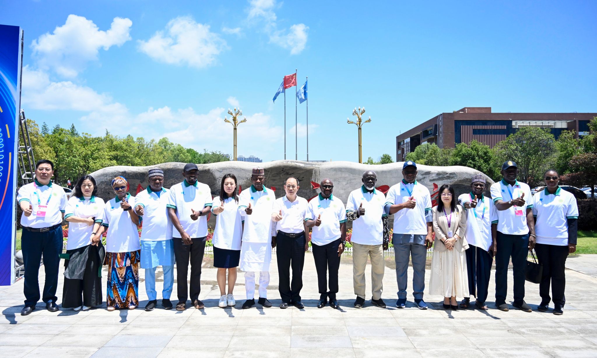 “共植友谊之树、文明之树、未来之树!”在中非文化园,何振、徐姝与来宾共植友谊树,寓意中非情缘代代传承,中非友谊根深叶茂。