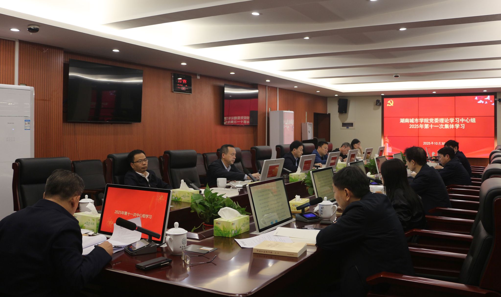 本网讯(通讯员 蔡润晨)10月30日,学校在办公楼一会议室举行党委理论学习中心组2025年第十一次集体学习。党委书记何振主持会议,党委理论学习中心组全体成员参加了会议。