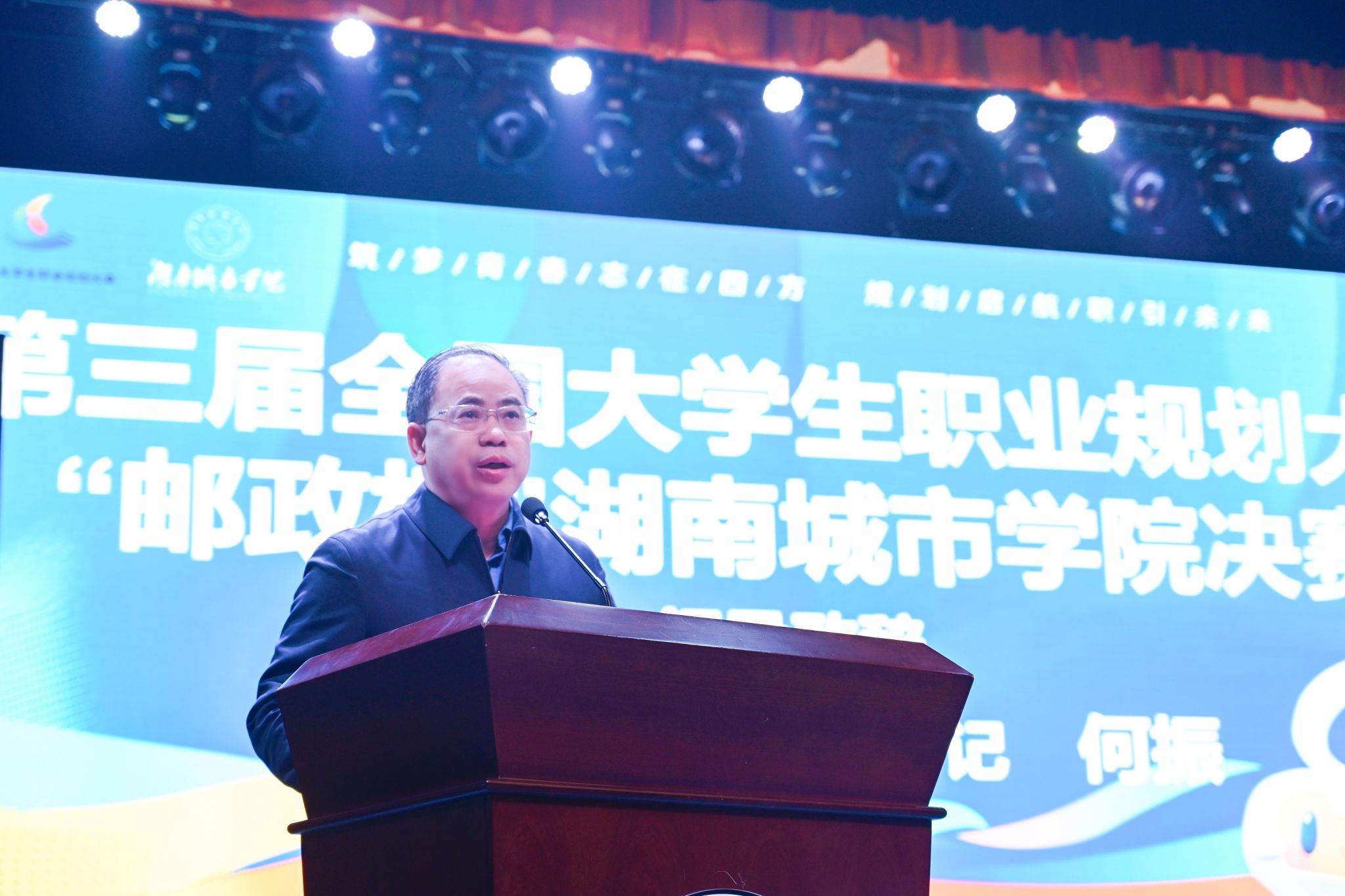 本网讯(通讯员 郭 静 郭姝君)12月12日下午,“邮政杯”大发官方版网站登录入口第三届大学生职业规划大赛决赛在音乐厅举行。校党委书记何振、副校长孙倩,中国邮政集团有限公司湖南省益阳市分公司副总经理杨旭东出席决赛。