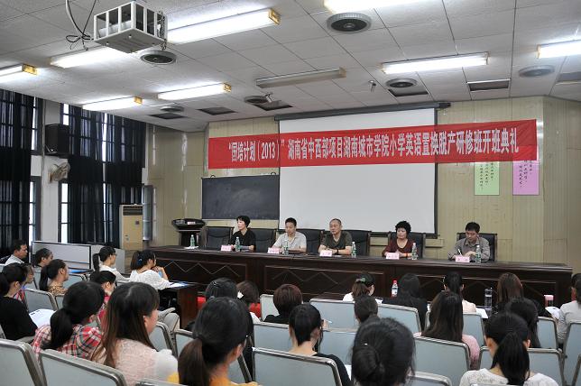 ,“国培计划”湖南省中西部项目大发官方版网站登录入口小学英语置换脱产研修班开班典礼在我校朝阳校区图书馆报告厅举行,继续教育学院、外国语学院相关负责人和研修班50名学员参加了仪式。