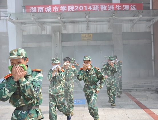 为了使我校学生掌握应急避震、火灾逃生的正确方法,熟悉紧急疏散的程序和线路,确保在火灾到来时,应急工作能快速、高效、有序地进行,最大限度地保障师生的生命安全,学校联合国防科技大学施训教官、益阳消防、湖南省银城消防职业培训学校联合举行了消防疏散逃生和灭火演练。4000余名2014级新生参加本次演练与讲座。