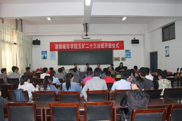 (本网讯)10月14日下午,我校五矿二十三冶校企合作班开课仪式在信息楼122室举行。五矿二十三冶成本管理部总经理刘嗣扬、人力资源部培训主管张丹丹,我校招生就业处、教务处、土木院、城市管理学院等部门以及五矿二十三冶校企合作班的42名学生(学员)一同参加了本次开班典礼。开班典礼由招生就业处处长文瑞明主持。