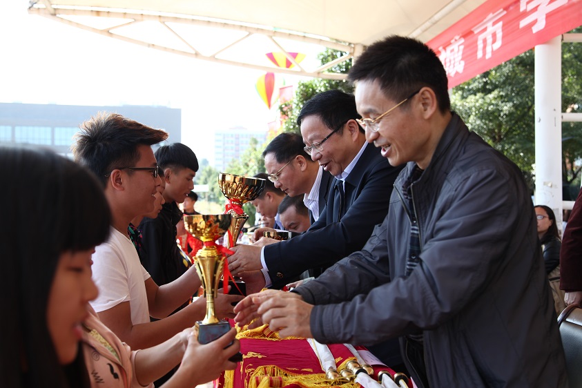 4日上午,第十一届校田径运动会举行了闭幕式,学校党委书记李建华、纪委书记杨斌、副校长刘辉煌、正校级督导范志超及各学院、各部门负责人出席闭幕式并为获奖单位颁奖。
