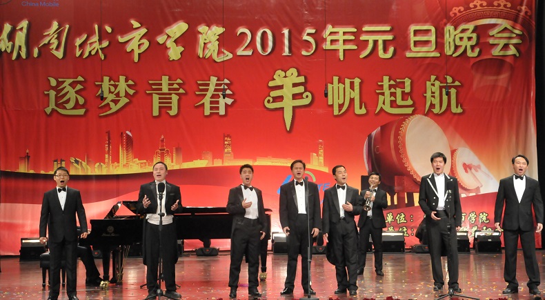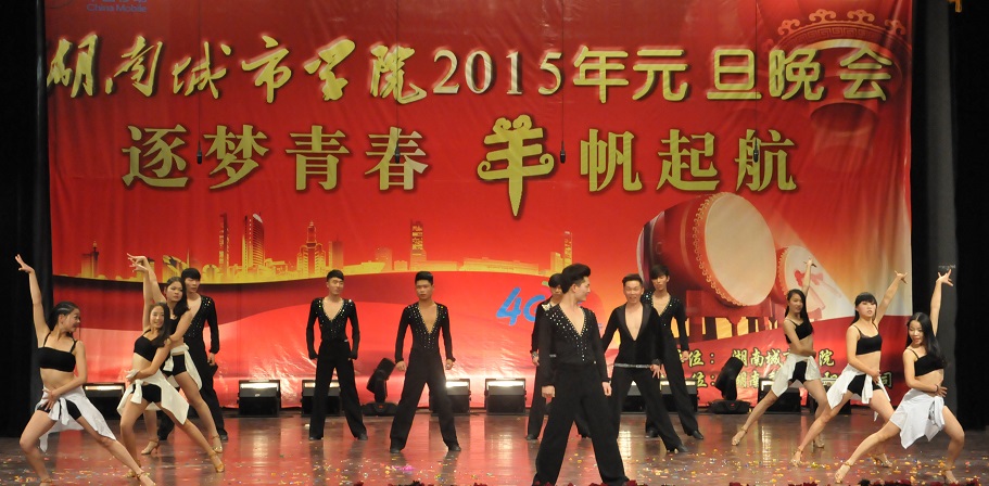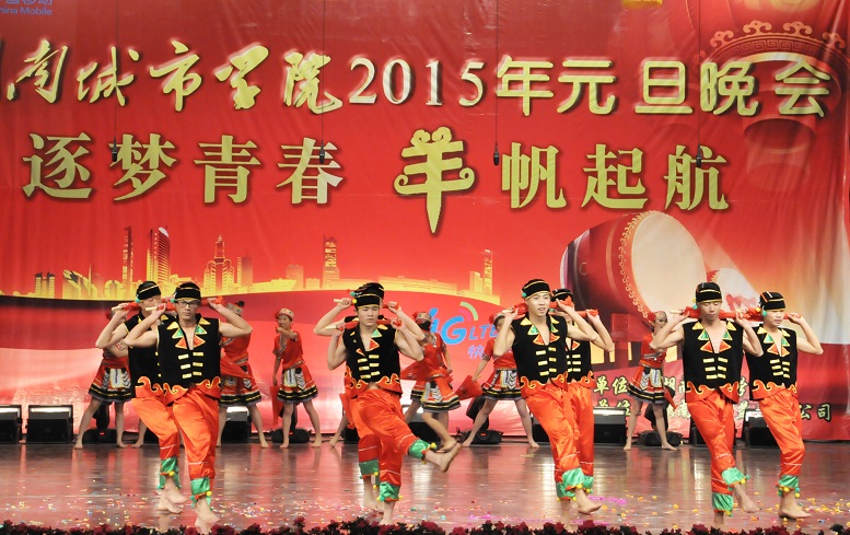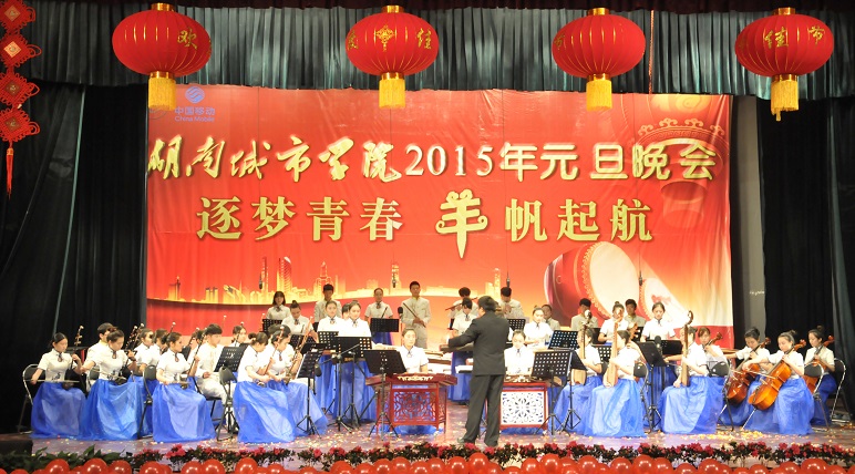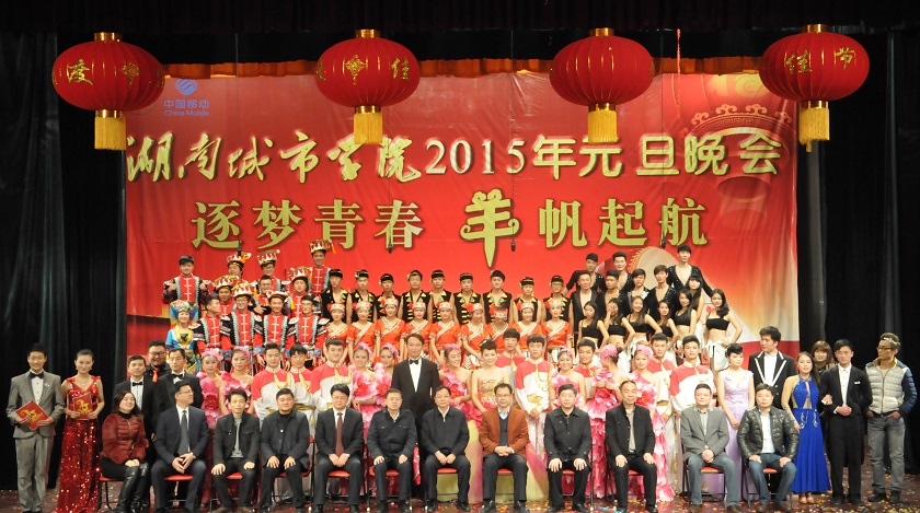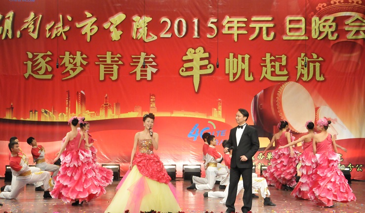 (本网讯) 12月   30晚,以“逐梦青春 ‘羊’帆起航”为主题的我校2015年元旦晚会在音乐厅隆重举行。在家的校领导与500余名师生欢聚一堂,载歌载舞,共同谱写新年华章。