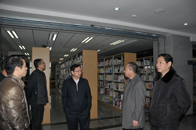 检查组一行在图书馆检查安全工作