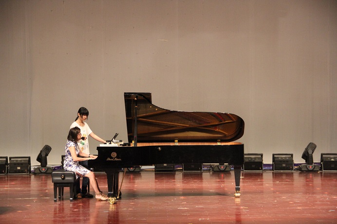 音乐会下半场均为中国作品。Laura Silverman和她的学生四手联弹了《彩月追月》,在中国音乐元素中注入了西方音乐元素,时而高亢时而低沉,时而安静时而狂燥,每一个音键的响动都牵扯着听众的心。最后她以一首《皮黄》结束了整场音乐会,赢得了听众们雷鸣般的掌声。