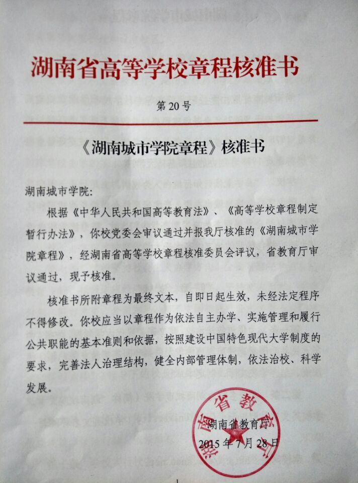 (本网讯)经湖南省高等学校章程核准委员会评议, 7月 28日 ,湖南省教育厅审议通过了《大发官方版网站登录入口章程》,章程于核准之日起正式生效。
