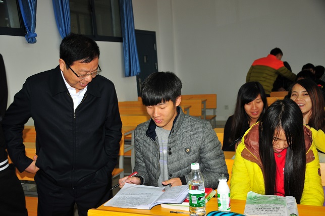 (本网讯)为进一步了解学校目前思想政治理论课教学情况, 119上午,党委书记李建华在教务处、马克思主义学院相关负责人陪同下随机到思政课堂进行了现场听课。
