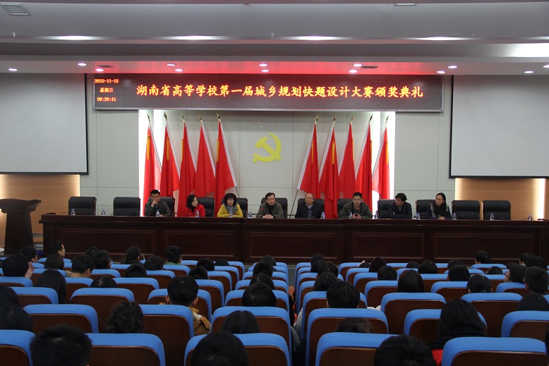 湖南省城乡规划学会谭春华副理事长宣读了本次快题设计比赛的获奖名单。我校大四学生颜玉芳、大五学生沈钰,湖南大学马润田,湖南工业大学彭耀辉和中南大学汪华5人荣获一等奖,吉首大学贺家宝等10人获得二等奖,湖南文理学院李伦等20人获得三等奖。(龚敦 汤慧)