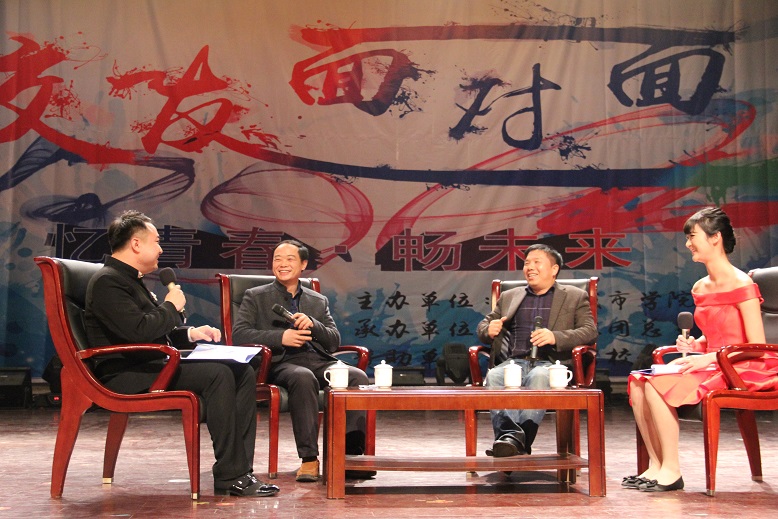 (本网讯) 11月22日晚,文学院特色活动“校友面对面”第三期在音乐厅举行。本期活动邀请到两位原中文系93届优秀校友,分别是乐享汇科技有限公司董事长兼CEO、移动互联O2O新商业模式创始人、践行者何劭强,以及先后任安化县委常委、组织部长、常务副县长、县委副书记,现任益阳市规划局党委书记、局长的李晓跃。活动主题围绕“忆青春畅未来”展开,回忆往昔峥嵘岁月,畅想未来美好理想。