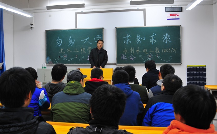 晚,在土木工程学院水利水电工程专业1403701班的“匆匆大学 求知求索”主题班会上,一位特别嘉宾的发言赢得了同学们热烈的掌声,他就是校长李建奇教授。为了进一步了解联系班级学生的思想状态,李建奇专程参加这次主题班会活动。