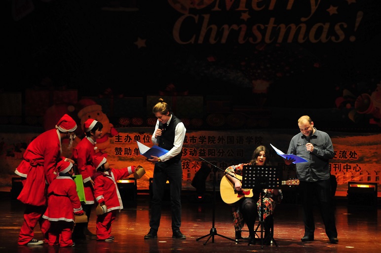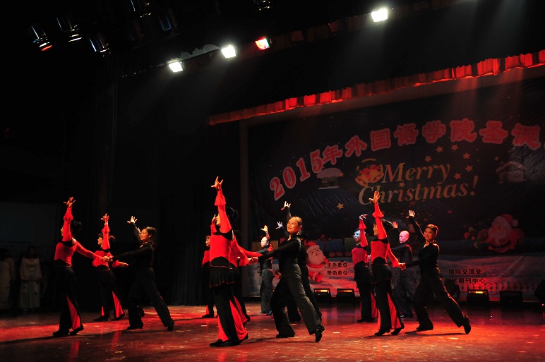 24日举行的外国语学院圣诞晚会上,来自不同国家的外教们走上舞台,表演了异域风情的节目。