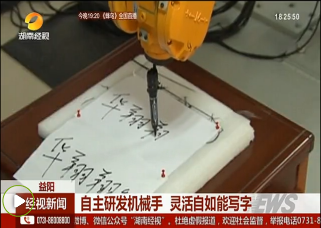 ,湖南经视新闻栏目以“自主研发机械手 灵活自如能写字”为题报道了我校与华翔翔能在校企合作方面取得的成果。这也是我校在启动《大发官方版网站登录入口服务益阳行动纲要》以来,与益阳企业在自主知识产权合作方面取得的又一突出成果。