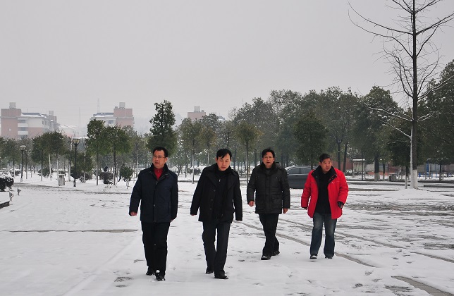 李建奇一行冒雪检查校园安全工作