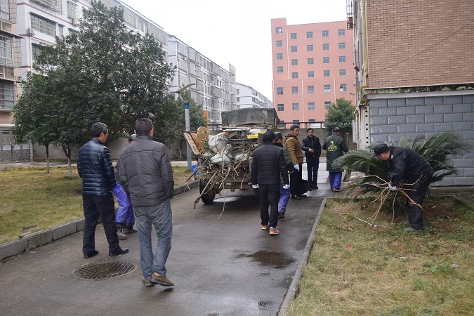 从12月13日开始,基建与后勤管理处相关负责人组织物业科、保卫处、社区以及城管负责人多次召开迎检工作布置会议,确定工作方案,对朝阳校区和新校区按照益阳市创卫办对“单位、庭院文明创建的标准”,进行全面清理和整治。