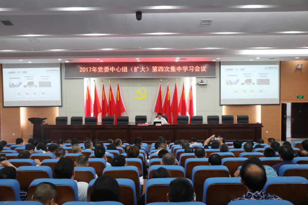 (本网讯)9月2日上午,我校党委中心组(扩大)2017年第四次集中学习在图书馆报告厅举行,会议学习了习近平总书记7月26日在省部级主要领导干部专题研讨班开班仪式上的重要讲话精神。党委中心组全体成员、处级干部、二级学院系(室、中心)主任参加了学习会。