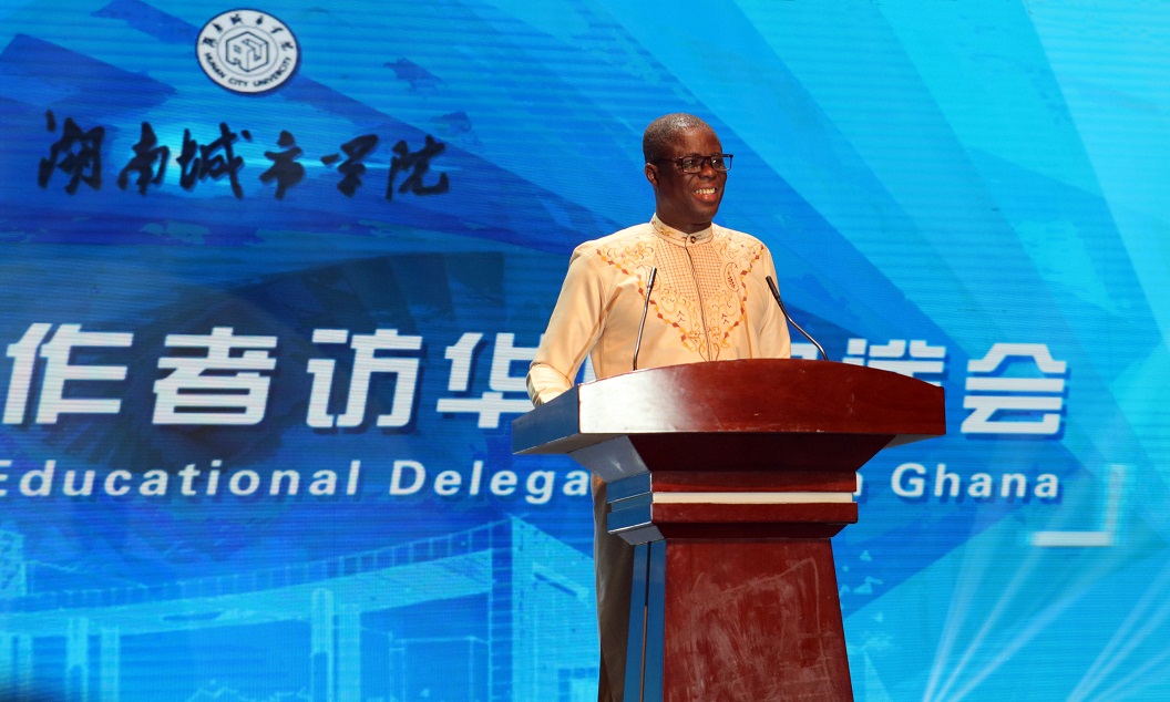 会上,党委书记罗成翼代表学校致辞。罗成翼对加纳教育工作者访华团在华期间取得的丰硕成果给予了充分肯定。他指出,随着中加关系蓬勃发展,各领域合作全方位展开,两国高等教育交流合作迎来了前所未有的大好机遇。学校高度重视招收加纳留学生工作,目前累计有超过60名加纳籍留学生在我校学习;学校与加纳海岸角大学共建的孔子学院已经成为当地民众学习汉语,了解中国文化的重要平台,为增进两国的了解、互信和友谊发挥了重要作用。他希望能够与海岸角大学、威尼巴大学、加纳中部省和加纳教育界进一步加强交流,特别是在孔子学院、学术交流、教师互访、学生互派、留学生等一系列领域深化合作,取得丰硕成果、促进双方共同发展。