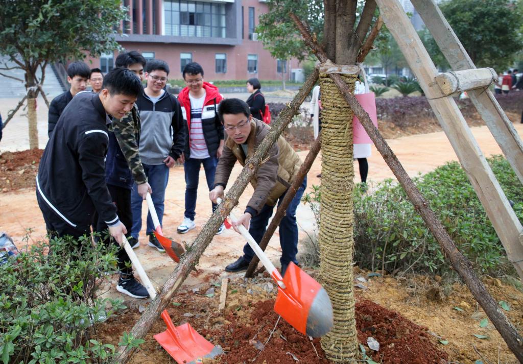 启动仪式结束后,全体校领导与各二级单位代表、学生代表纷纷来到认捐的树木前,手执铁锹为其培土,为美丽校园增添了一道道亮丽的风景。(文/博夕 图/博夕 赵玲)