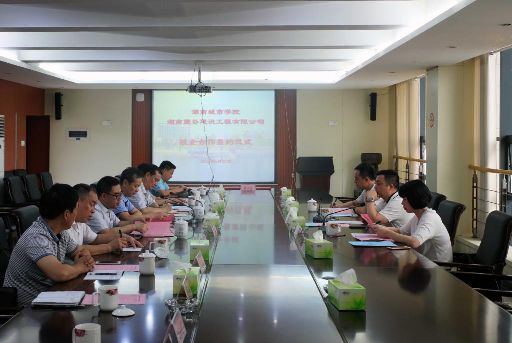 (本网讯)6月22日下午,我校与湖南麓谷建设工程有限公司校企合作协议签署仪式在一办公楼一会议室隆重举行。湖南麓谷建设工程有限公司总经理马腾、人力资源部经理刘敏、综合管理部经理王川,副校长夏宏宇、郑卫民、雷存喜出席仪式。仪式由雷存喜主持。