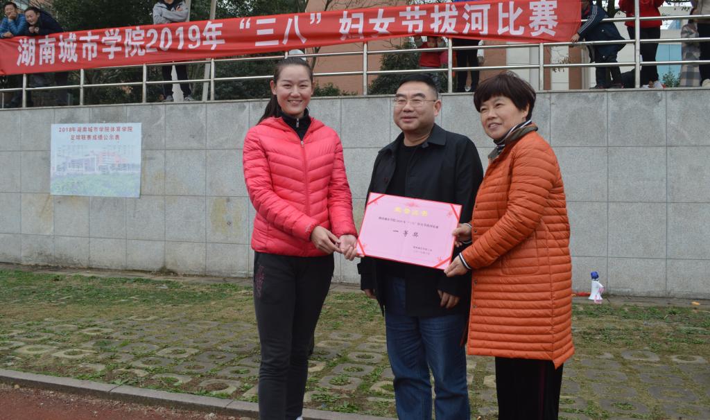 (本网讯)2019年3月7日下午,我校在学校田径场举行了庆 “三八”妇女节拔河比赛。全校女教职工组成12支队伍共200多人参加了比赛。