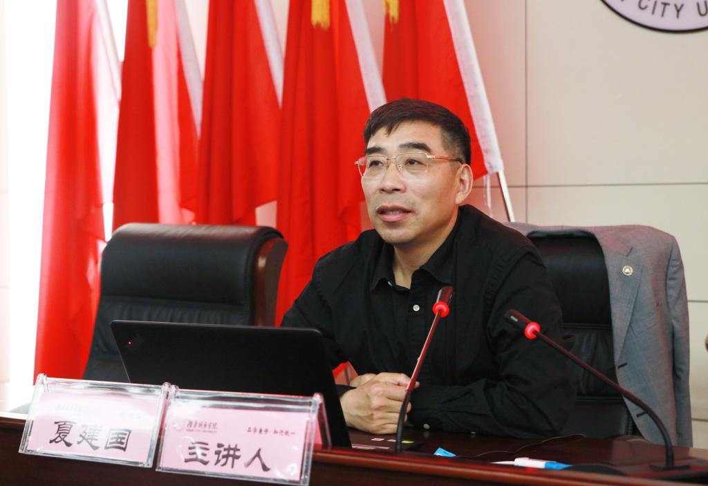 (本网讯)2019年4月25日下午,学校“四个回归”论坛在图书馆报告厅开讲,上海工程技术大学校长夏建国教授应邀来校作论坛首讲。在家的校领导,教务处、工程训练中心、质控中心相关人员和二级学院院领导、系(室)中心主任及教师代表参加。
