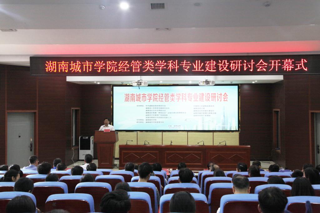 (本网讯)2019年6月2日,我校召开经管类学科专业建设研讨会。会议以“房地产经营管理,城市管理专业应用型人才”为主题,省委政策研究室、中国致共党湖南省委员会、省政府发展研究中心等20多家单位代表和嘉宾及校长李建奇,党委副书记汤放华,副校长郑卫民、谭献良共150余人参加会议。