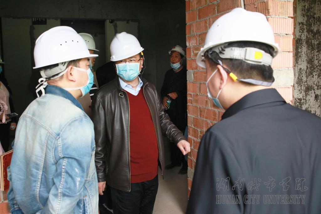 本网讯  2020年3月21日,校长李建奇在副校长谭献良、基建与后勤管理处相关人员陪同下,对我校第24栋学生公寓项目建设情况进行了检查和指导。