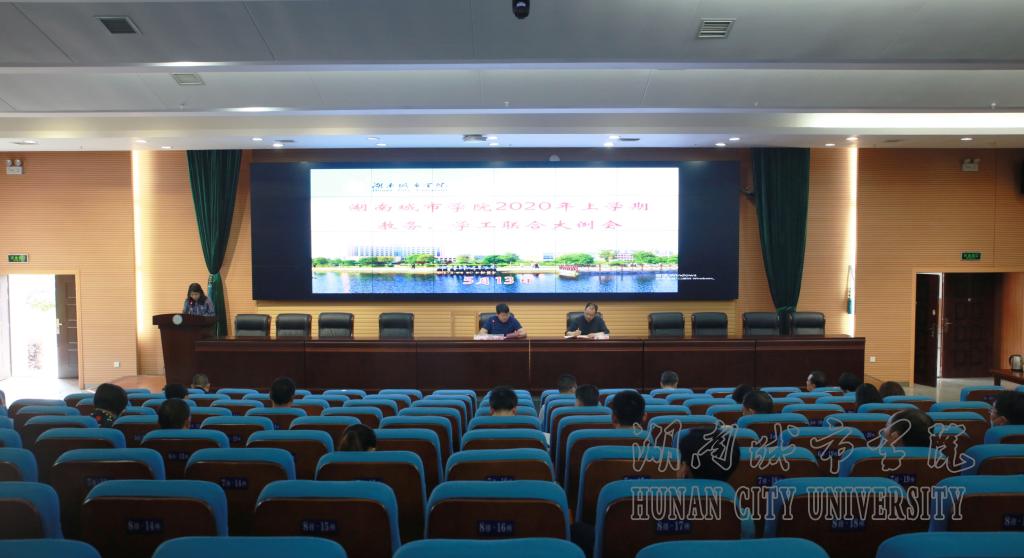 本网讯 2020年5月13日下午,我校在图书馆报告厅召开2020年春季学期教务、学工联合大例会。党委书记罗成翼,校长李建奇,副校长夏宏宇、郑卫民、雷存喜出席会议。各二级学院党委(总支)书记、副书记、院长、教学副院长,教务处、学生工作处、招生就业处、团委、教学质量监控与评估中心等部门负责人参加会议。会议由罗成翼主持。