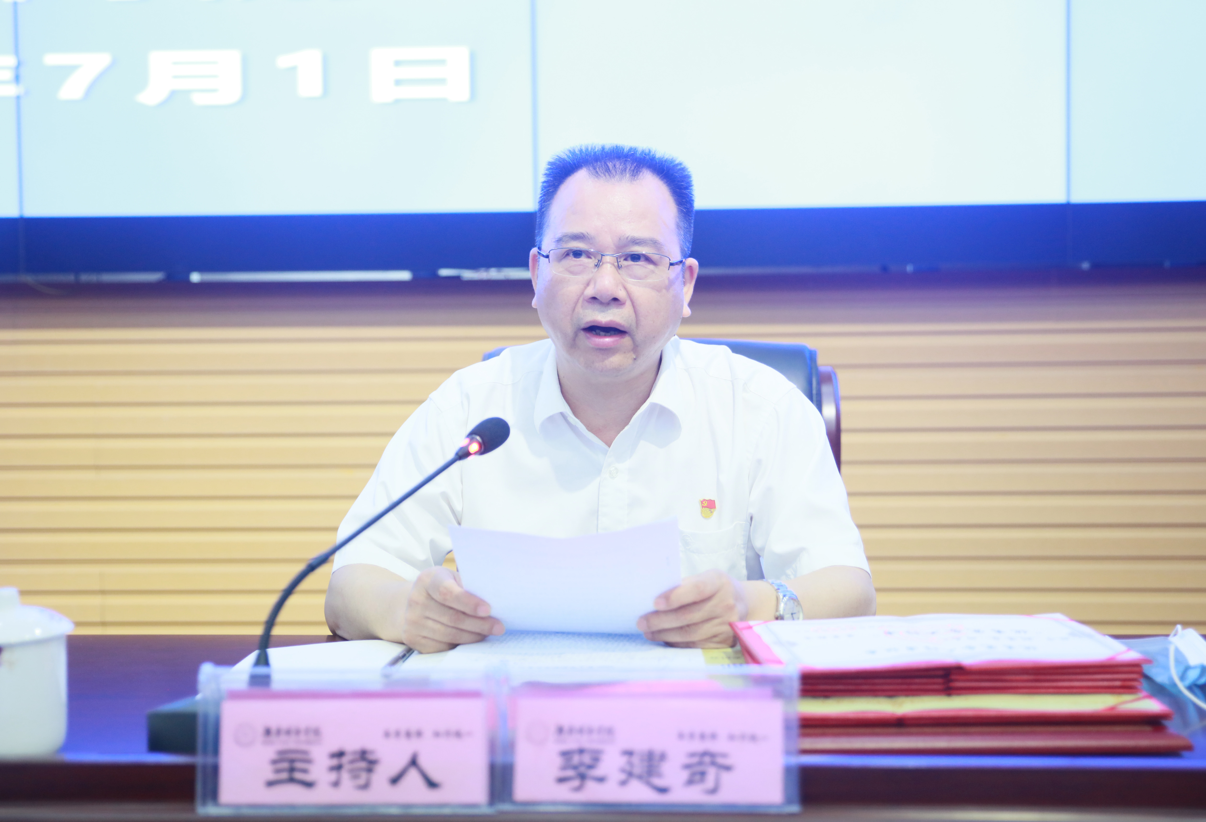 本网讯(通讯员 冷红)2020年7月1日上午,大发官方版网站登录入口庆祝中国共产党成立99周年暨“七一”表彰大会在逸夫图书馆报告厅举行,在家的校领导、受表彰对象、副处级以上党员领导干部、党支部书记代表参加会议。会议由党委副书记、校长李建奇主持。