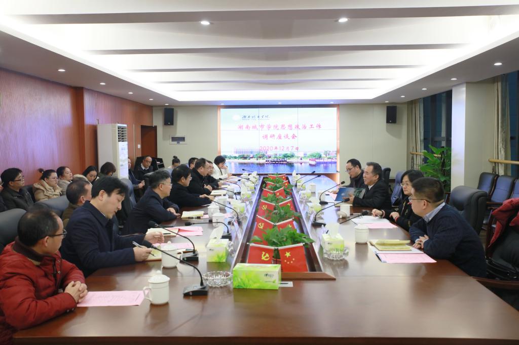 本网讯 2020年12月7日下午,省委宣传部副部长、省文明办主任肖凌之一行来校进行思想政治工作调研。学校在办公楼一会议室召开座谈会,党委书记罗成翼、校长李建奇、党委副书记汤放华,副校长郑卫民、雷存喜,党委委员、组织部部长袁志成以及其他有关部门负责人、思政课教师代表、学生辅导员代表参加座谈会。会议由李建奇主持。