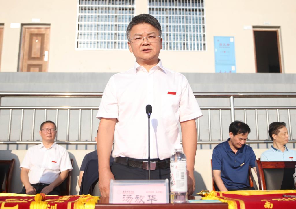 党委副书记、校长汤放华宣布军训成果汇报表演开始。