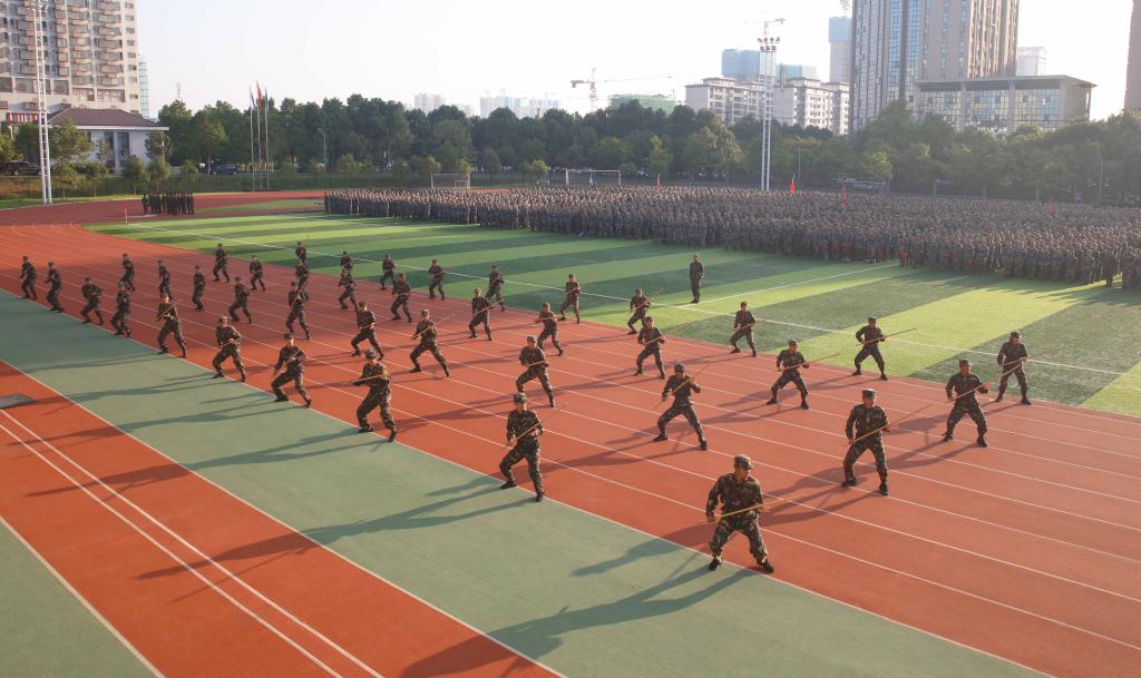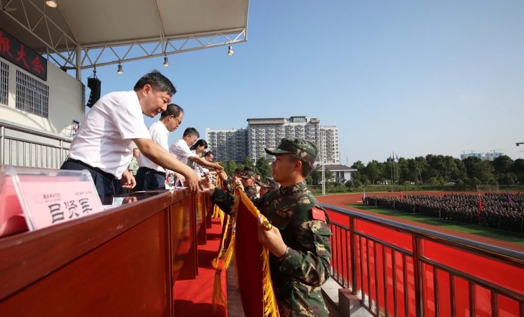 袁志成作了军训总结报告。他表示,在此次军训中,各级领导高度重视、悉心指导,辅导员和教官工作积极主动、高度负责,全体参训同学文明上进,不怕苦、不怕累,眼神更加坚毅了,纪律更加严明了,作风更加硬朗了,精气神更加足了。希望全体参训学生把在军训中形成的雷厉风行、艰苦奋斗、积极进取、团结合作的良好作风融入到今后的学习、工作和生活中,力争成为志存高远、思想过硬、专业扎实、品德高尚的合格大学生和爱党、爱国、爱人民、爱校、爱家的新时代好青年!