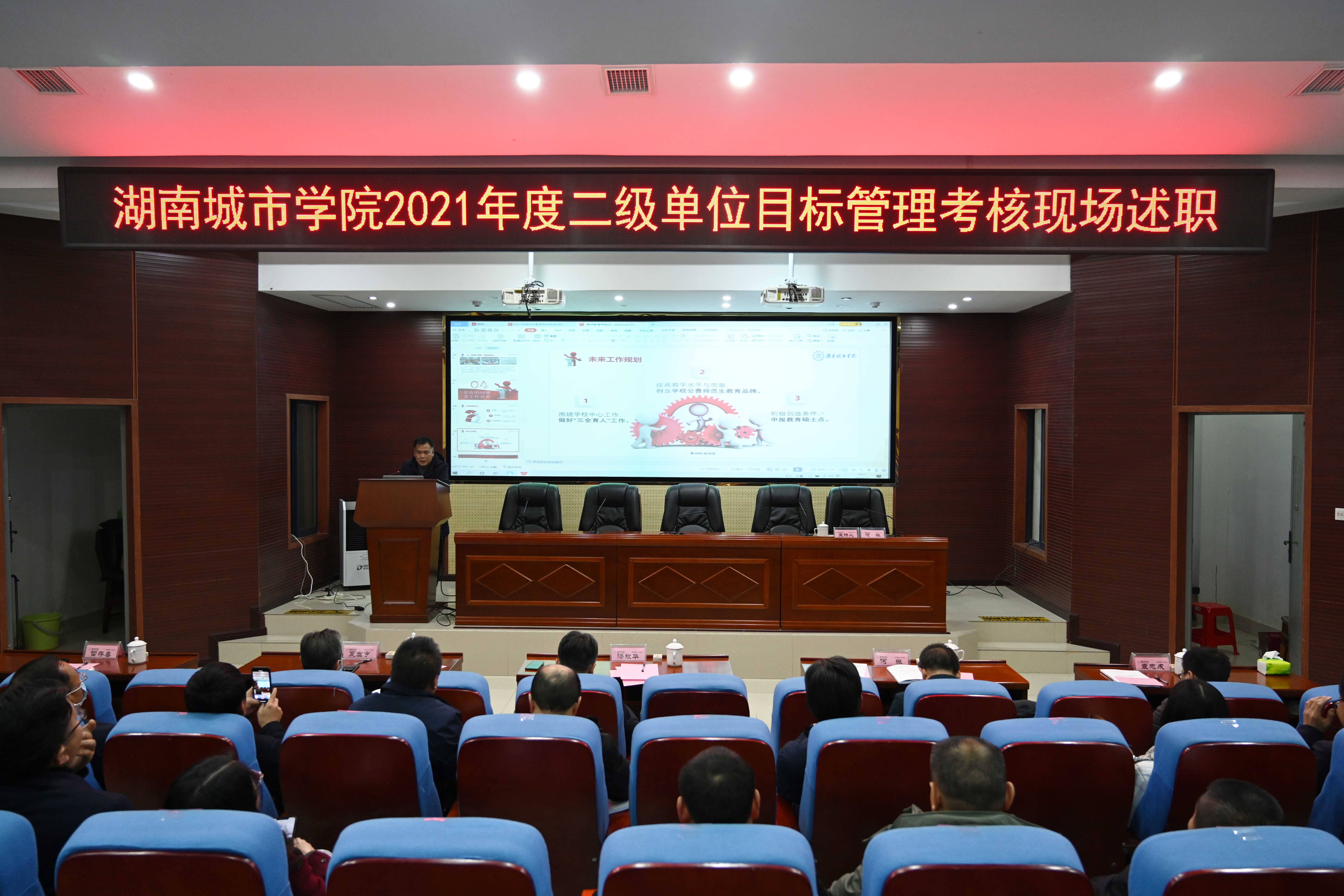 本网讯(记者 文彦波)2022年1月7日,我校2021年中层正职述职评议大会分场次在一办公楼一会议室和建规楼121报告厅召开。二级基层党组织书记,二级学院院长,党政、群团及直属单位主要负责人分别作了公开述职和交叉测评。在家的校领导出席会议并参加了测评。