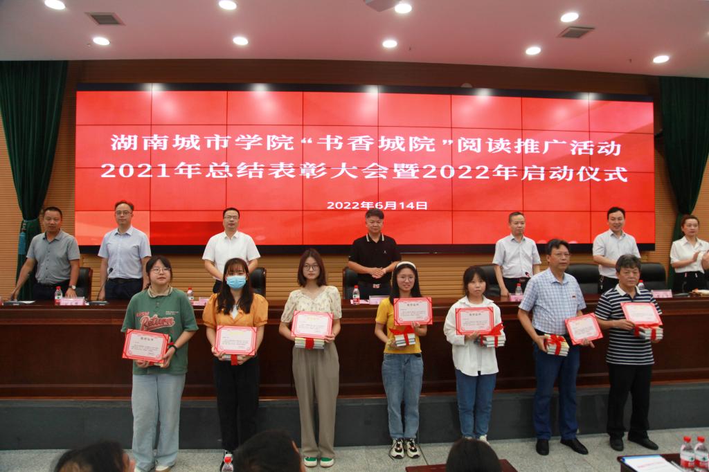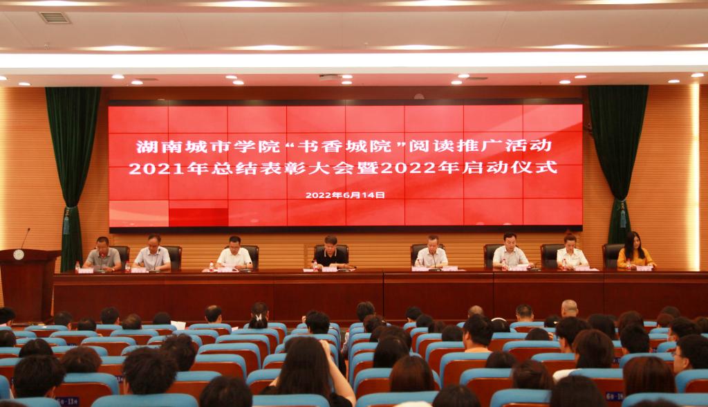 本网讯(通讯员 陈国民 梁钢)季夏之月,正是阳光灿烂时。2022年6月14日上午,我校在图书馆报告厅召开“书香城院”阅读推广活动2021年总结表彰大会暨2022年启动仪式。校长汤放华出席会议并讲话,副校长袁志成,党委宣传部、学生工作部、教务处、团委主要负责人,各二级学院分管学生工作的副书记、图书馆领导班子成员及相关人员、获奖集体及个人代表、学生代表、文献资源供应商代表等共300余人参加会议。启动仪式由副校长夏宏宇主持。