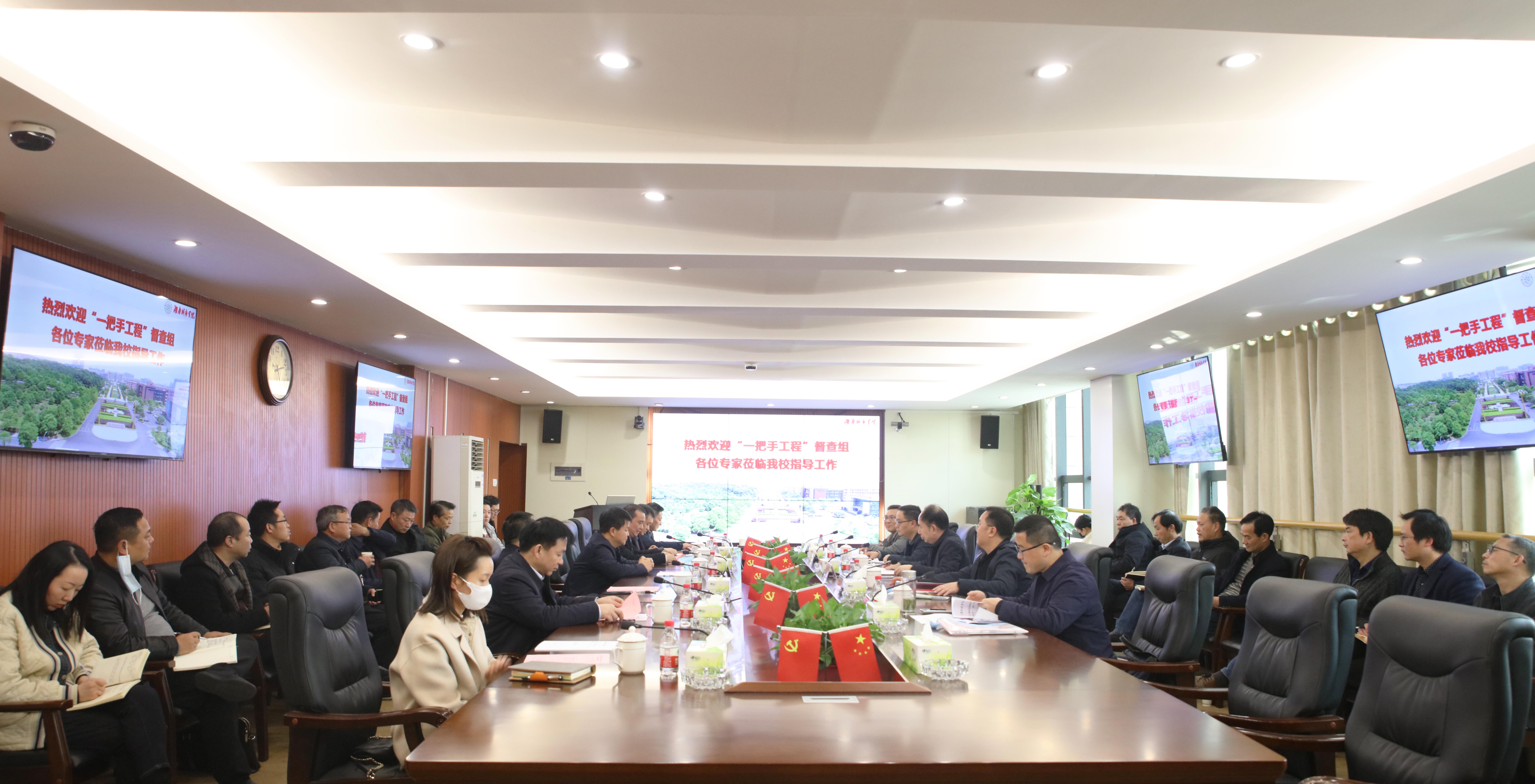 本网讯(通讯员 唐正君)2023年2月20日,全省普通高等学校毕业生就业创业工作“一把手工程”专家组一行5人来校开展就业创业工作“一把手工程”现场督查。学校党委书记汤放华,副校长雷存喜、袁志成以及就业创业工作领导小组成员、各二级学院负责人参加汇报会和反馈会。会议由雷存喜主持。
