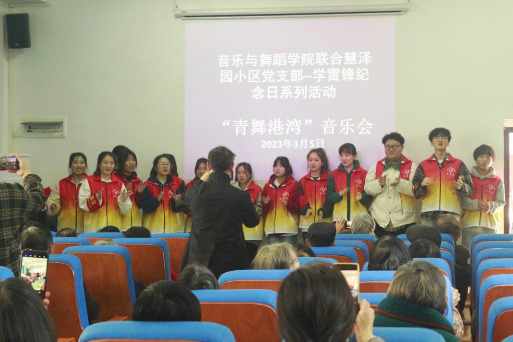 音乐与舞蹈学院的师生们深入社区,发挥艺术特长,举办雷锋纪念日系列活动之“青舞港湾”音乐会,对社区居民进行文化宣传。“万水千山不忘来时路,鲜血浇灌出花开的国度……”一曲《不忘初心》拉开了演出序幕,阮、古筝、长笛、大提琴等多种乐器演奏依次登场。“177篇日记是雷锋生命历程中的思考和追求,这些‘金子一般的语言’承载着他的感悟与思想,从昨天走向今天,从今天走向未来……”节目《雷锋日记》朗诵把活动推向了高潮。“此次音乐会不仅有利于促进学校与社区的文化交流,也进一步提高了社区与高校共建水平,希望以后有更多的青年学子深入社区服务群众。”羊舞岭社区党总支部委员张曲表示。音乐会在全体志愿者与社区群众共同演唱的《学习雷锋好榜样》中落下帷幕。