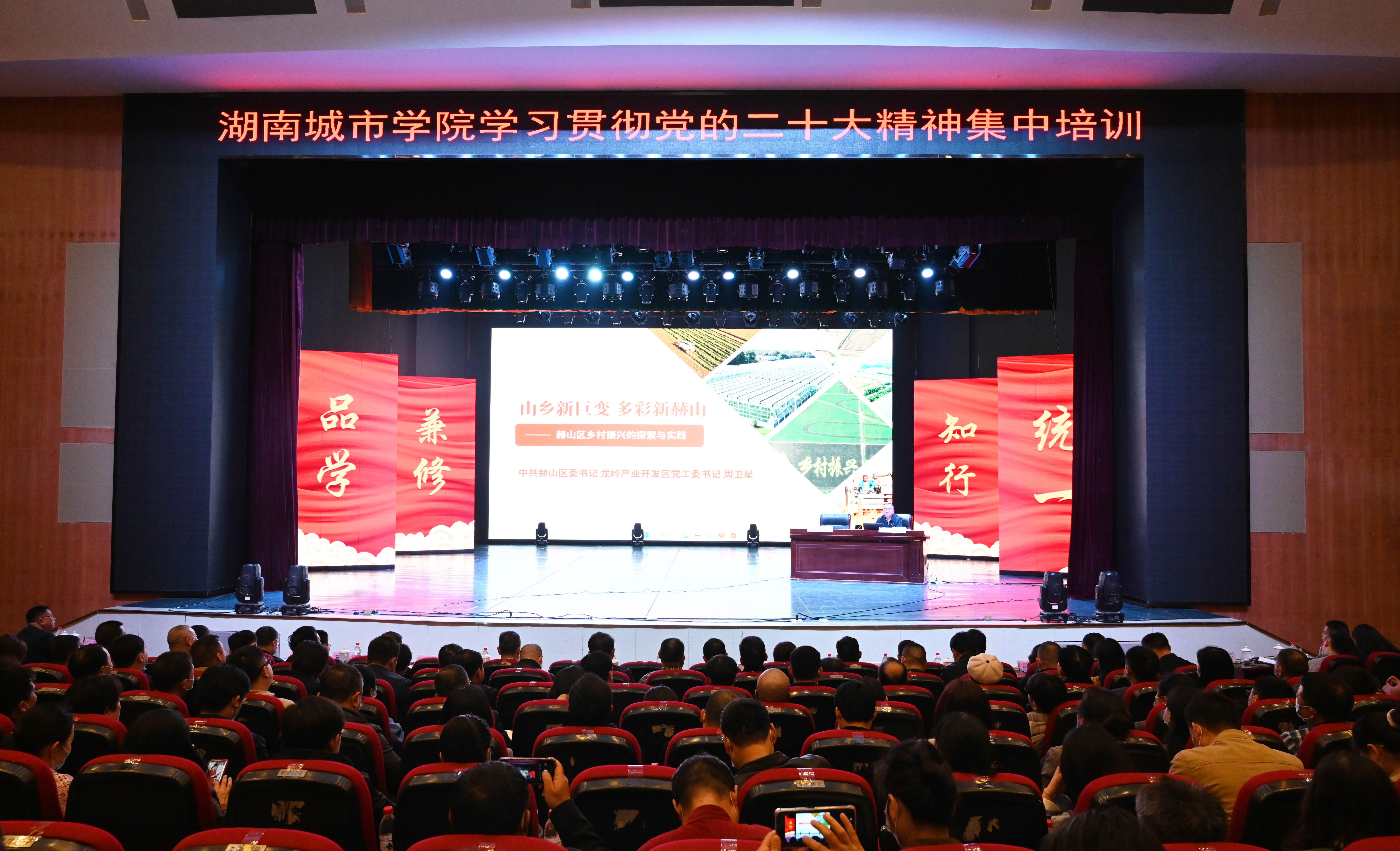 签约仪式结束后,周卫星以《山乡新巨变 多彩新赫山》为题,为在场的教职工进行了学习贯彻党的二十大精神专题培训。
