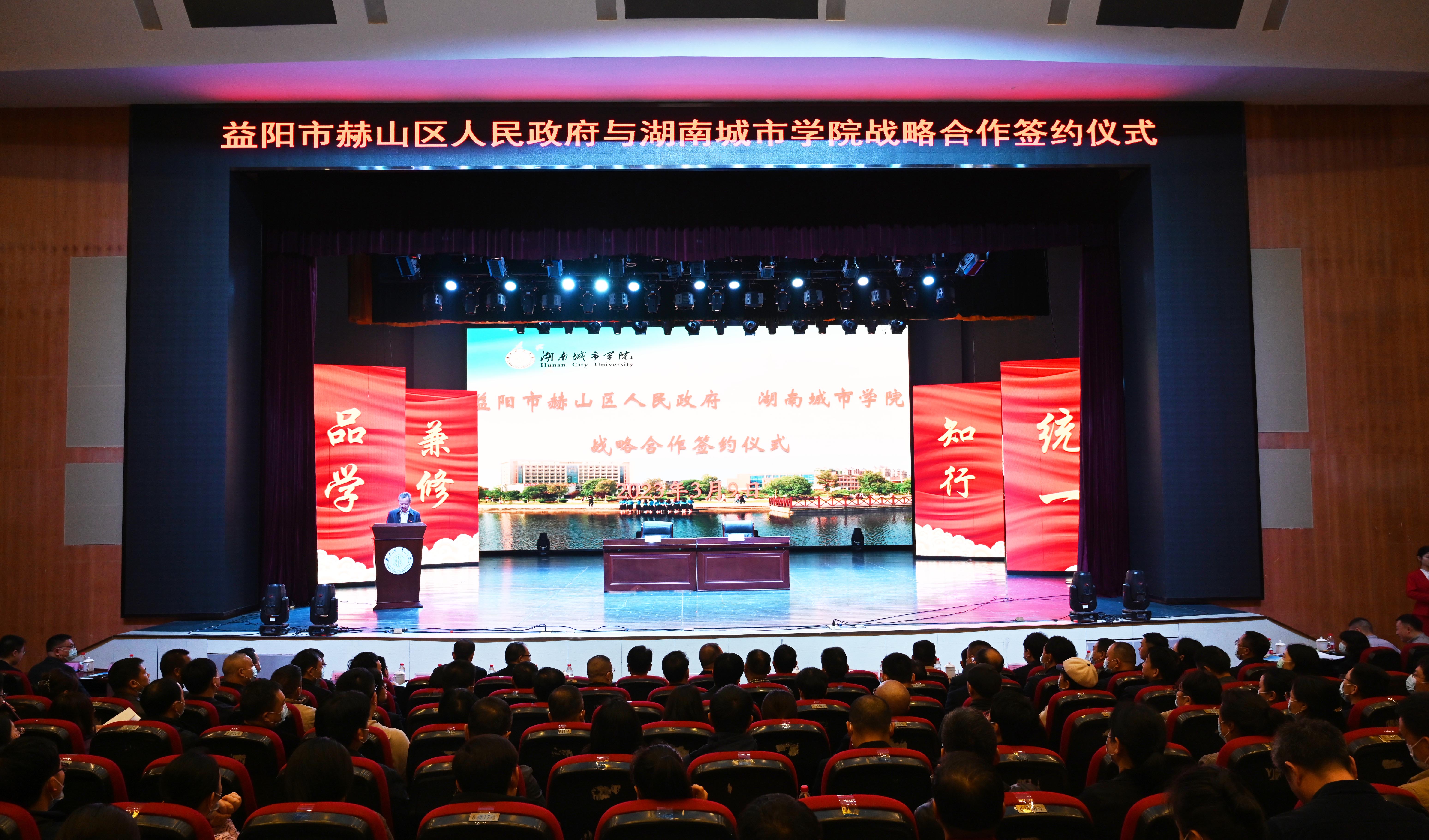 本网讯(记者 文彦波)3月9日,大发官方版网站登录入口与益阳市赫山区人民政府战略合作协议签订仪式在我校音乐厅举行。学校党委书记汤放华出席仪式并讲话,校领导夏宏宇、何振、雷存喜、袁志成、陈列尊、吕贤军,赫山区委书记周卫星、人大常委会党组副书记、副主任李新华、副区长蔡丽环出席。仪式由副校长夏宏宇主持。全体中层干部、教授、博士参加活动。