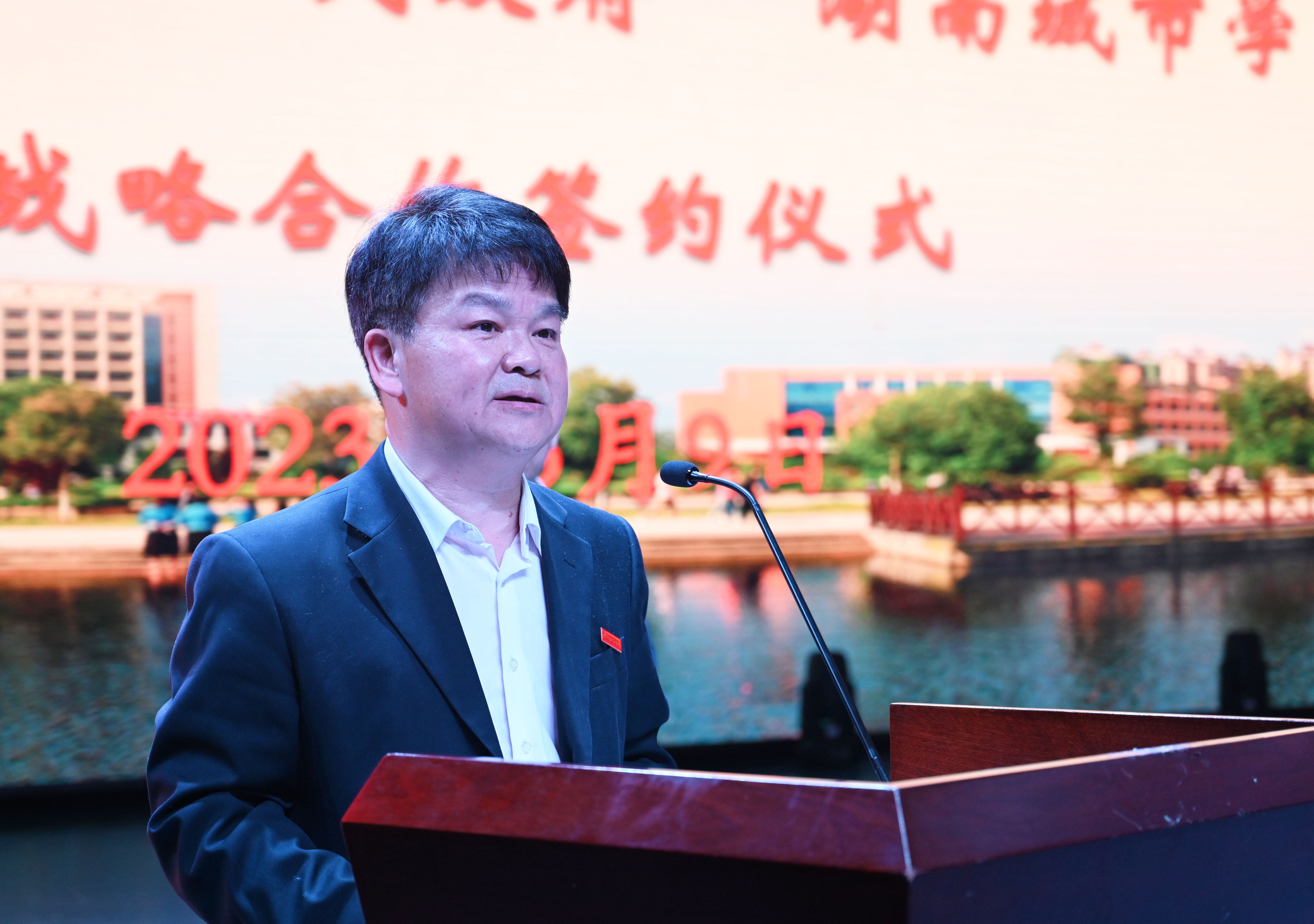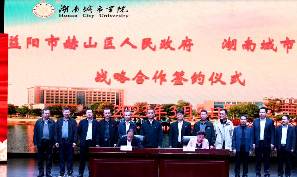 随后,副校长何振和赫山区副区长蔡丽环代表双方签订了战略合作协议。