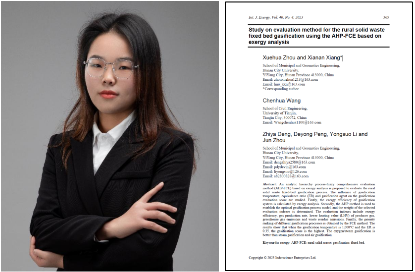 本网讯(供稿:市政与测绘工程学院)2023年3月,我校市政与测绘工程学院建筑环境与能源应用工程专业学生周雪花、邓志雅以第一作者身份分别在SCI期刊《International Journal of Exergy》和EI期刊《太阳能学报》上发表学术论文。