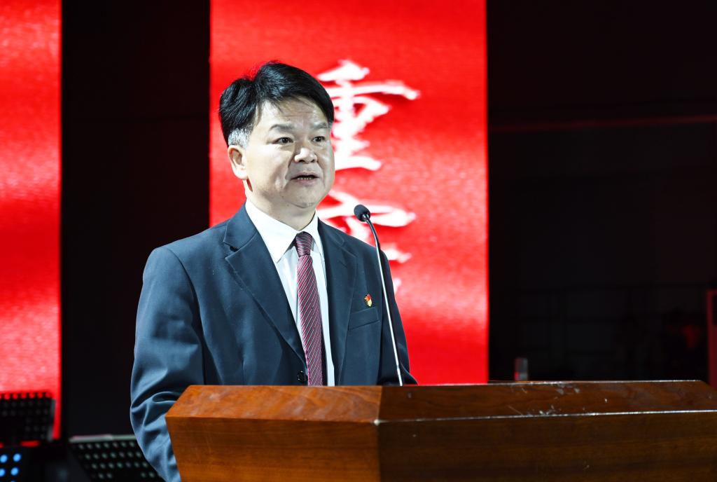 演出之前,汤放华发表讲话,向全校青年朋友们表达诚挚的问候和良好的祝愿。他表示,在全党深入开展学习贯彻习近平新时代中国特色社会主义思想主题教育之际,我们以青春的名义相聚在这里,以“沉浸式”和“场景化”的方式开展主题教育活动,引导广大城院青年真正做到以学铸魂、以学增智、以学正风、以学促干。
