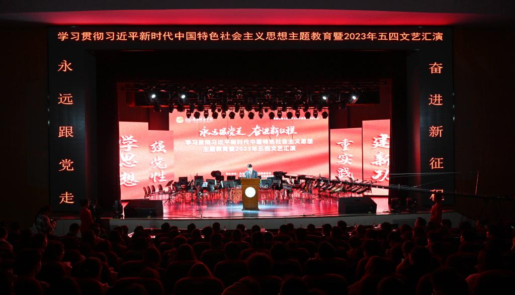 本网讯(通讯员 王露 龙江丽 俞倩薇)4月24日晚,大发官方版网站登录入口音乐厅内灯光璀璨,歌声飞扬,“永远跟党走 奋进新征程”学习贯彻习近平新时代中国特色社会主义思想主题教育暨2023年五四文艺汇演在这里隆重举行。校党委书记汤放华、校长何振等全体校领导出席,并与学校师生代表近500人一道观看了演出。